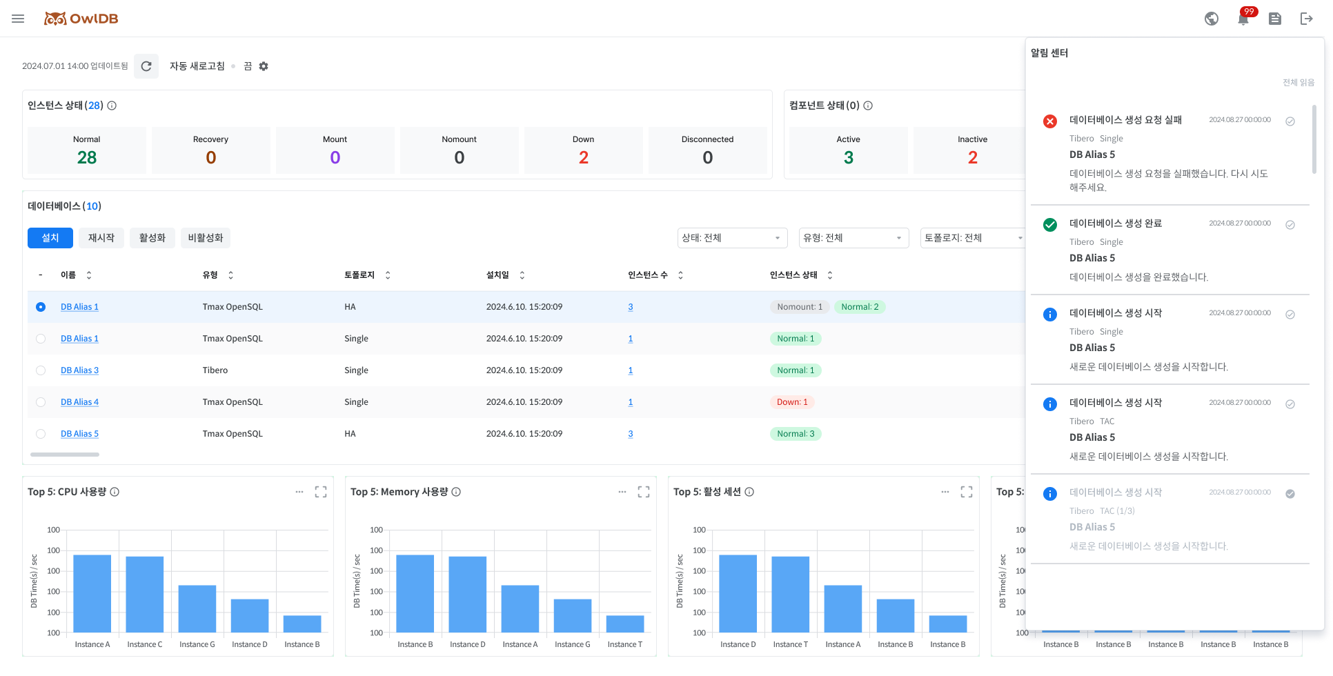 OwlDB provides notifications for various events that occur while using OwlDB. Notifications can be viewed by clicking the 🔔 icon in the top right corner of the console screen.