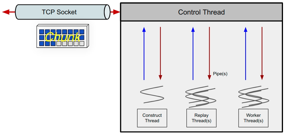 동기화에 필요한 Thread 는 Construct Thread 와 Replay Thread 로 크게 두 가지로, 나머지는 모두 Worker Thread 로 구분 된다.