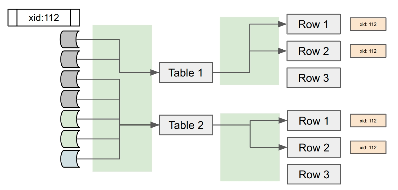 만약 위 그림과 같이 xid: 111인 트랜잭션이 아직 반영이 끝나지 않았다면 대기하게 된다. 반영이 완료된 트랜잭션은 위 Linked list에서 제거가 되고, xid: 112가 반영 가능하게 되면 반영 작업을 진행한다.