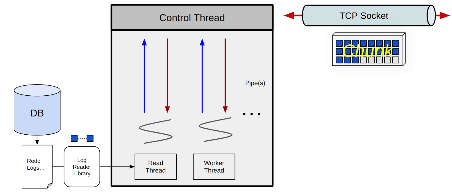 변경 데이터를 추출하고 이를 Chunk형태로 만든 뒤 Control 스레드를 통해 Apply 프로세스에 전달한다.