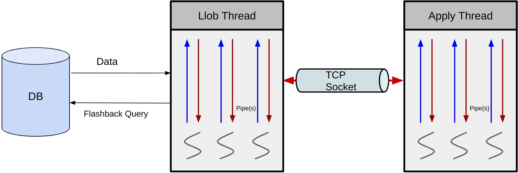 Llob 프로세스는 Apply 프로세스의 요청에 따라 Source DB의 Long, Clob, Blob 등의 대용량 데이터를 전달하는 동작을 수행한다.