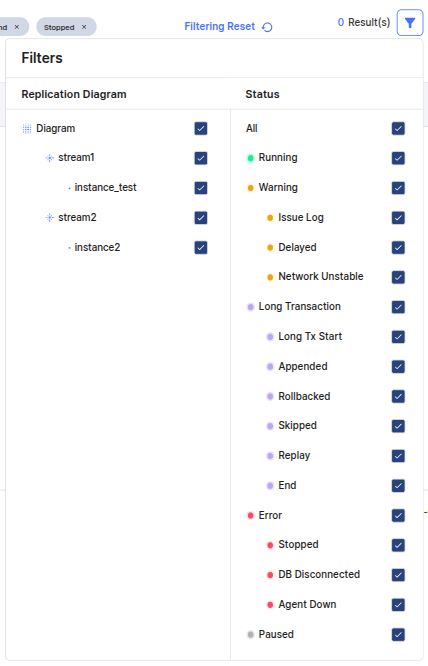 Select the Instances the users want to select/clear by the filtering criteria. Select Stream if the users want to select/clear all instances in a Stream, or Diagram if the users want to select/clear all instances in the current Diagram.