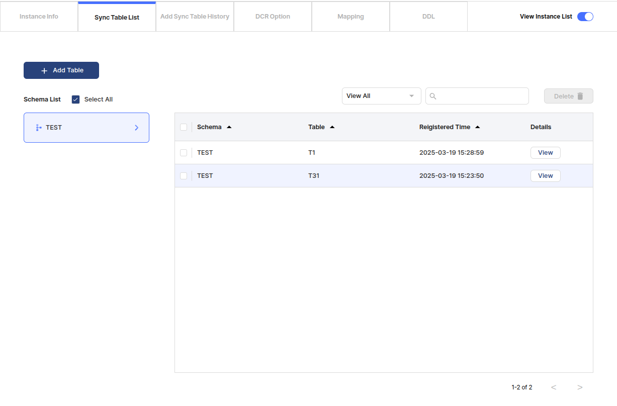 The users can filter Schema list to check a list of synchronized tables.