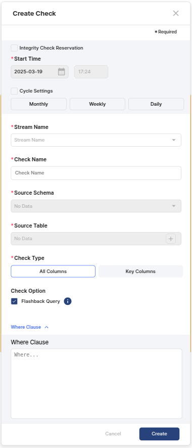 Cycle Settings: Specify whether to perform the integrity check repeatedly. The users can set the cycle in Monthly / Weekly / Daily units.