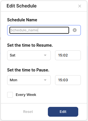 Select the schedule the users want to edit to edit it. The editable items are Schedule Name, Resume Time, Pause Time, and whether to repeat.