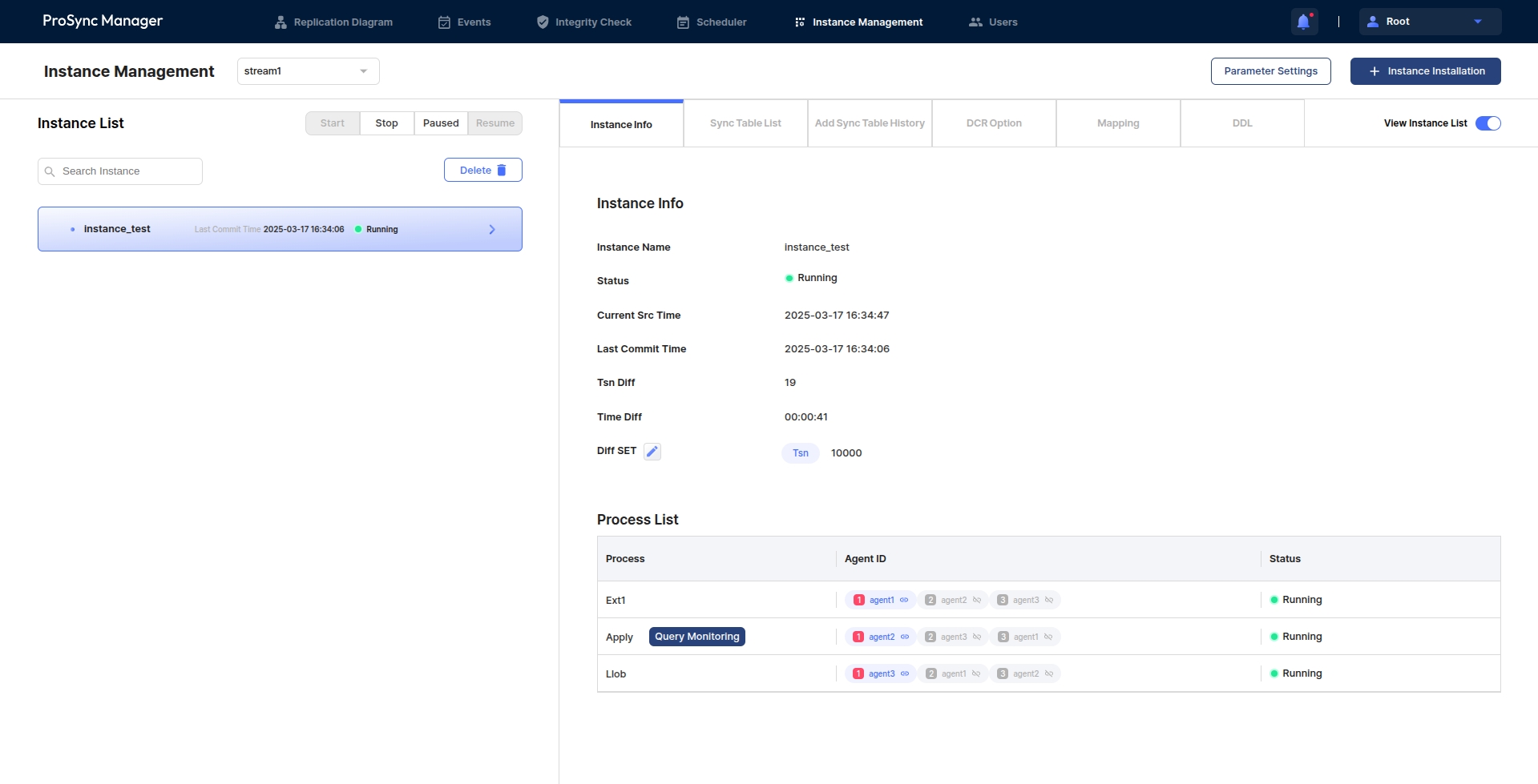 본 장에서는 ProSync Manager의 Instance Management 페이지에 대해 설명한다.