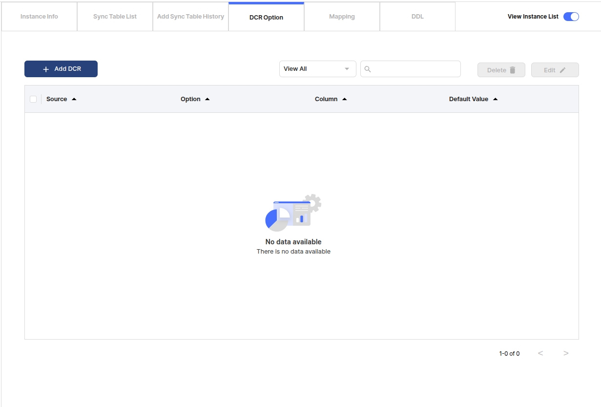 해당 Instance에 설정되어 있는 DCR Option을 확인할 수 있다.