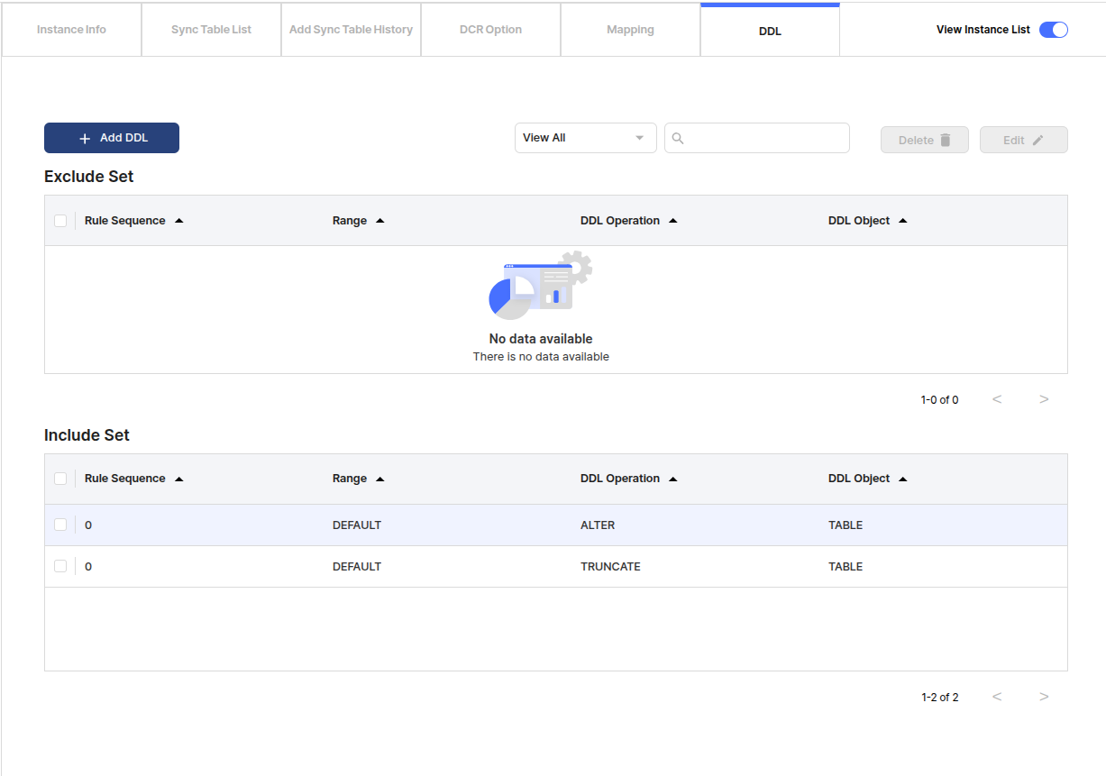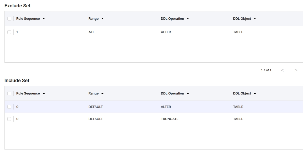 이 때 Rule Sequence는 Include set 의 DEFAULT range의 ALTER TABLE이 더 낮으므로 우선순위를 가지며, Exclude Set의 ALL range의 ALTER TABLE은 동기화 되지 않는다.