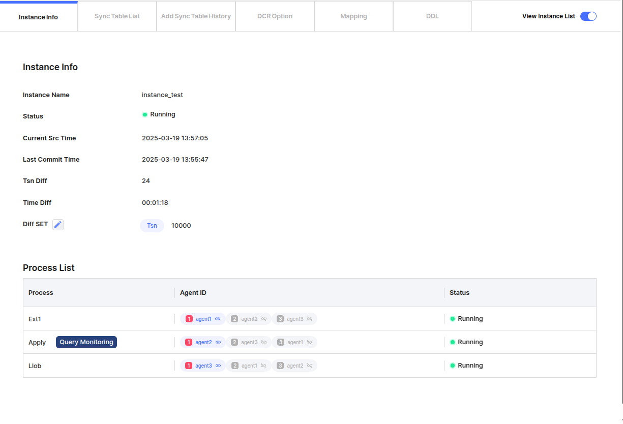 Instance에 속한 process와 상태, Query Monitoring을 확인할 수 있다.