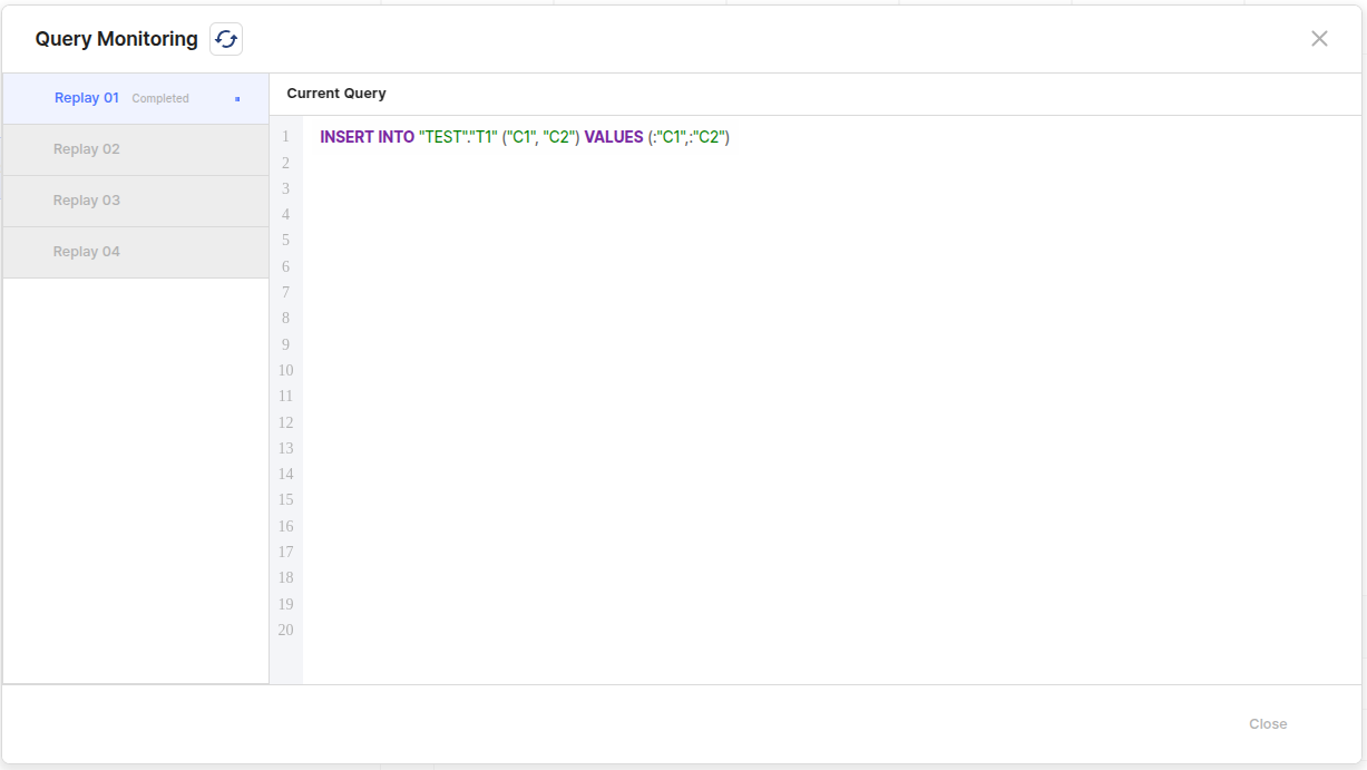 해당 Replay thread가 적용한 Query문을 확인 할 수 있다.