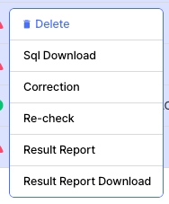 Integrity Check 실행에 대한 결과값을 확인할 수 있는 기능이다. 확인하고자하는 job을 다중 선택하여 마우스 우클릭 시 Result Report 항목 확인 및 download 할 수 있다.