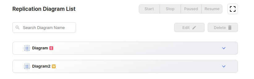 Replication Diagram List의 영역을 확장 할 수 있는 버튼이다.