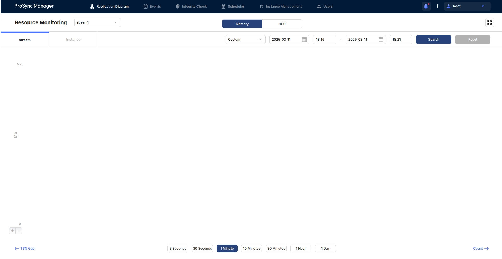 Resource Monitoring ProSync가 사용한 Memory 및 CPU 사용량을 확인 할 수 있다. 해당 차트는 Apply 프로세스의 정보만을 표시한다.