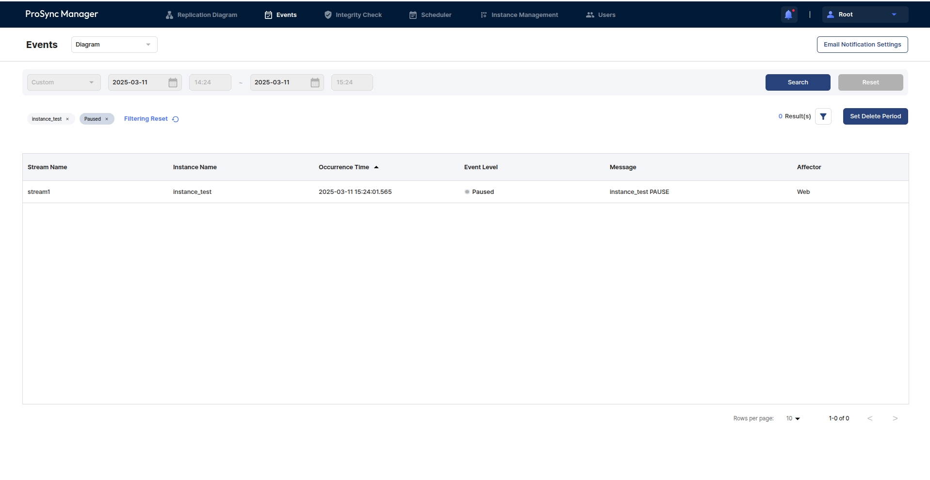 등록된 Diagram에 대하여 Event 발생 시 간단한 Event List 를 확인할 수 있다.