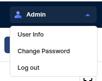 현재 로그인한 User의 Role이 표시되며, 해당 영역 선택 시 User 관련 기능 Drop Box 가 나타난다.