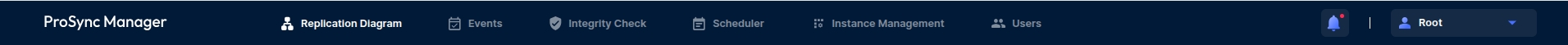 ProSync Manager의 로고 이며, 해당 로고 클릭 시 메인 화면(Replication Diagram 페이지)로 이동한다.