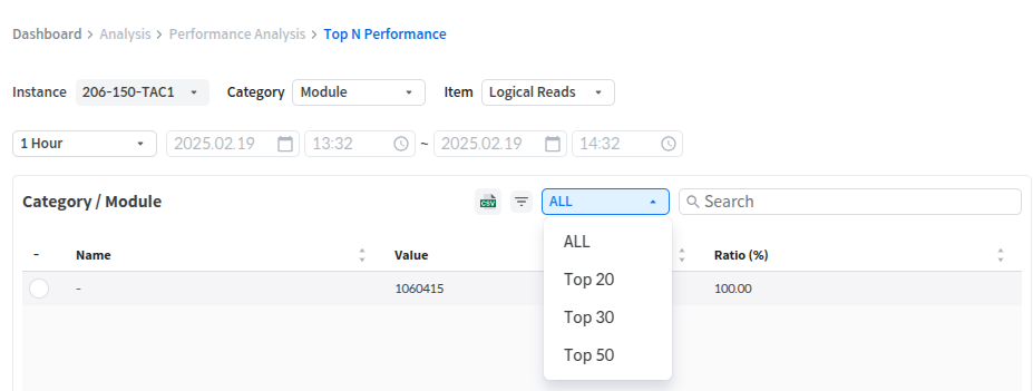 Click [Analysis] > [Performance Analysis] > [Top N Performance] in the global navigation bar to open the Top N Performance screen.