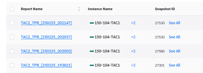 Click the See All button to view the list of other Snapshots used to generate the report.