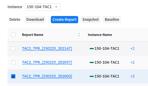 Displays a list of reports generated for each monitored instance in a table format. Clicking on the Report Name in the list will link to the viewer page to view the corresponding report.