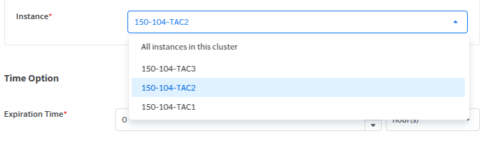 The users can select one item from the Instance selection dropdown menu. The dropdown menu options are All Instances in this cluster (all instances in the cluster) and instances registered in SysMasterDB within the cluster.