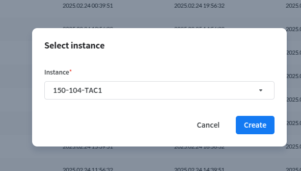 When the users click the Create Report button, an instance selection window will appear. Select an instance to display the TPR Report Create screen.