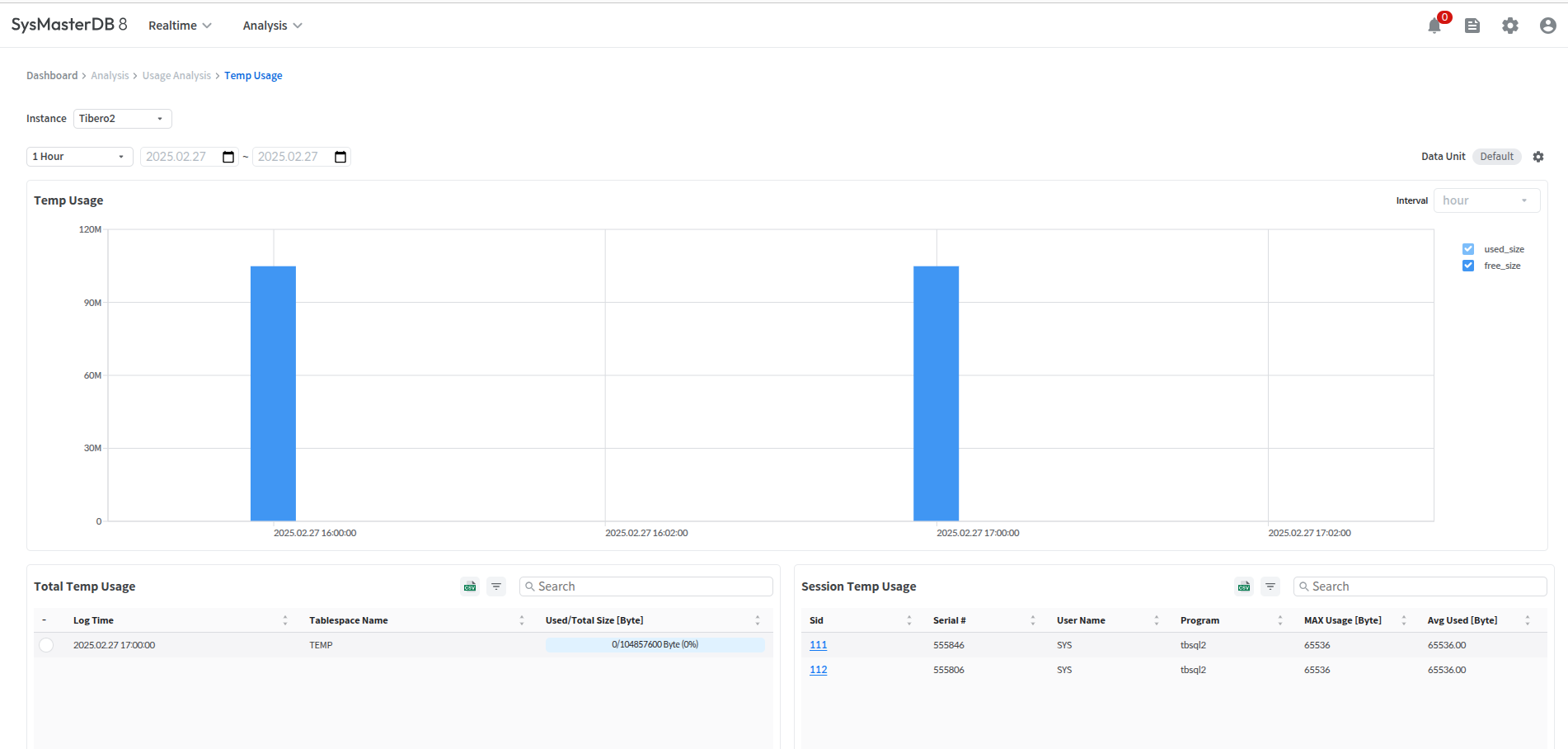 Used Temp Size / Total Temp Size (Unit: Byte)
