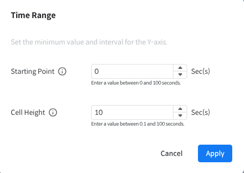 Cell Height: The value that sets the Elapsed Time of each cell on the Y-axis of the chart.