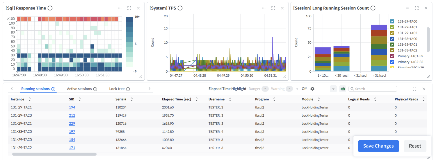 Through customization, the users can place all real-time charts, sessions, and lock monitoring tables supported by SysMaster in any desired location and size.