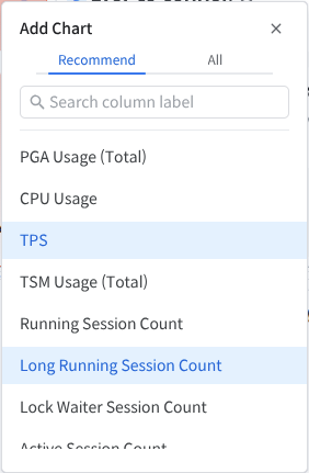 The users can select a chart from the Recommend section or choose from all real-time charts provided by the system master in the All section to display on the dashboard.