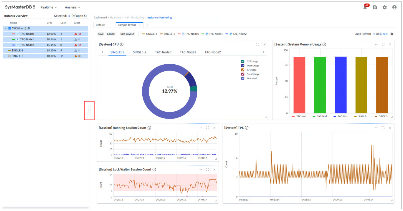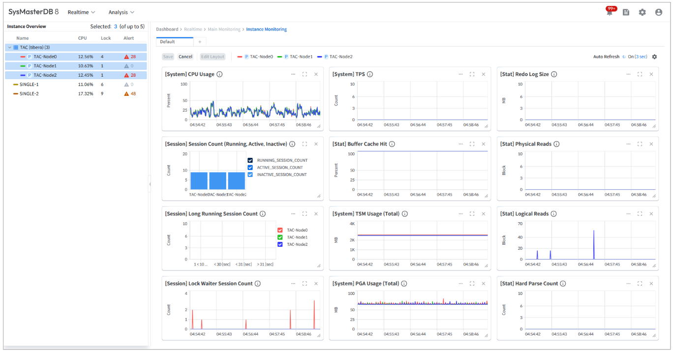 Users can select and monitor up to 5 instances simultaneously in a single layout.