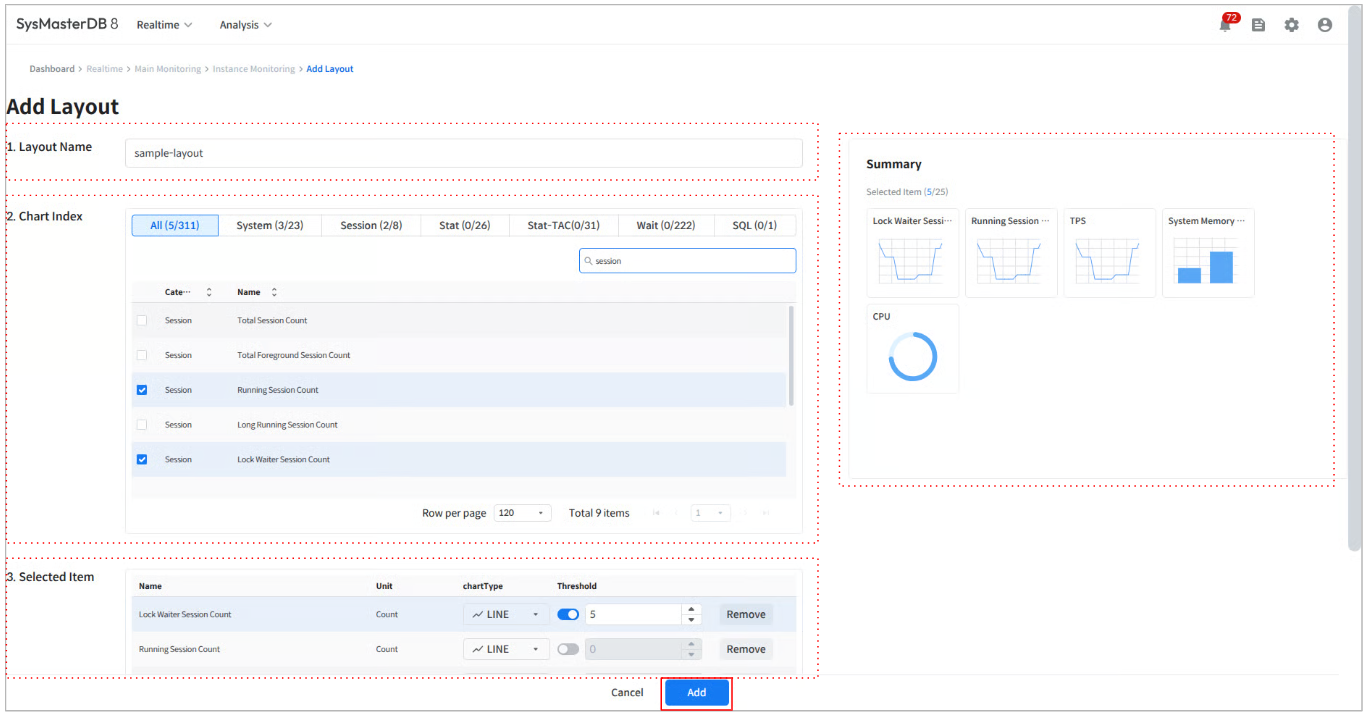 Enter the layout name. This name will be displayed on the Instance Monitoring page.