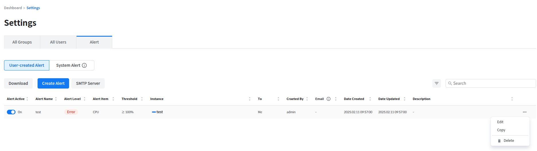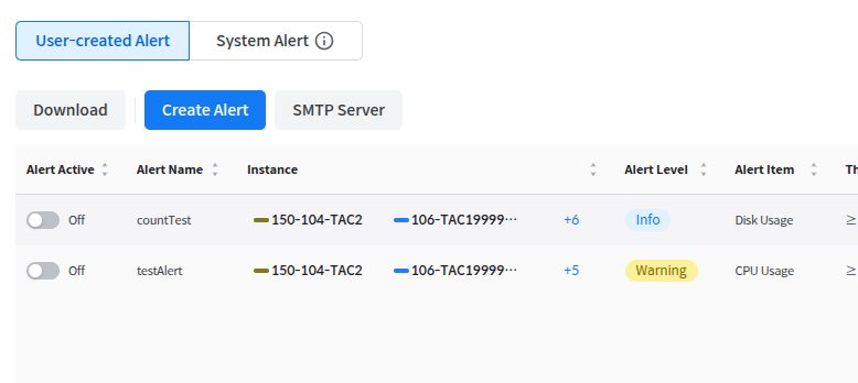 Alerts are divided into two types: User-created Alerts and System Alerts.