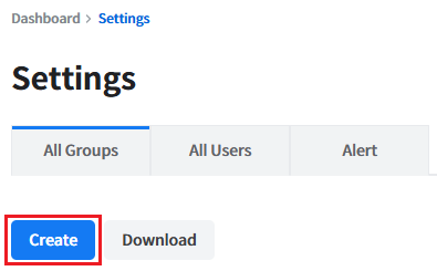 In the Settings menu, click the All Groups menu in the top-left corner, then click the Create button at the bottom to create a new group. This will allow the users to create a group.
