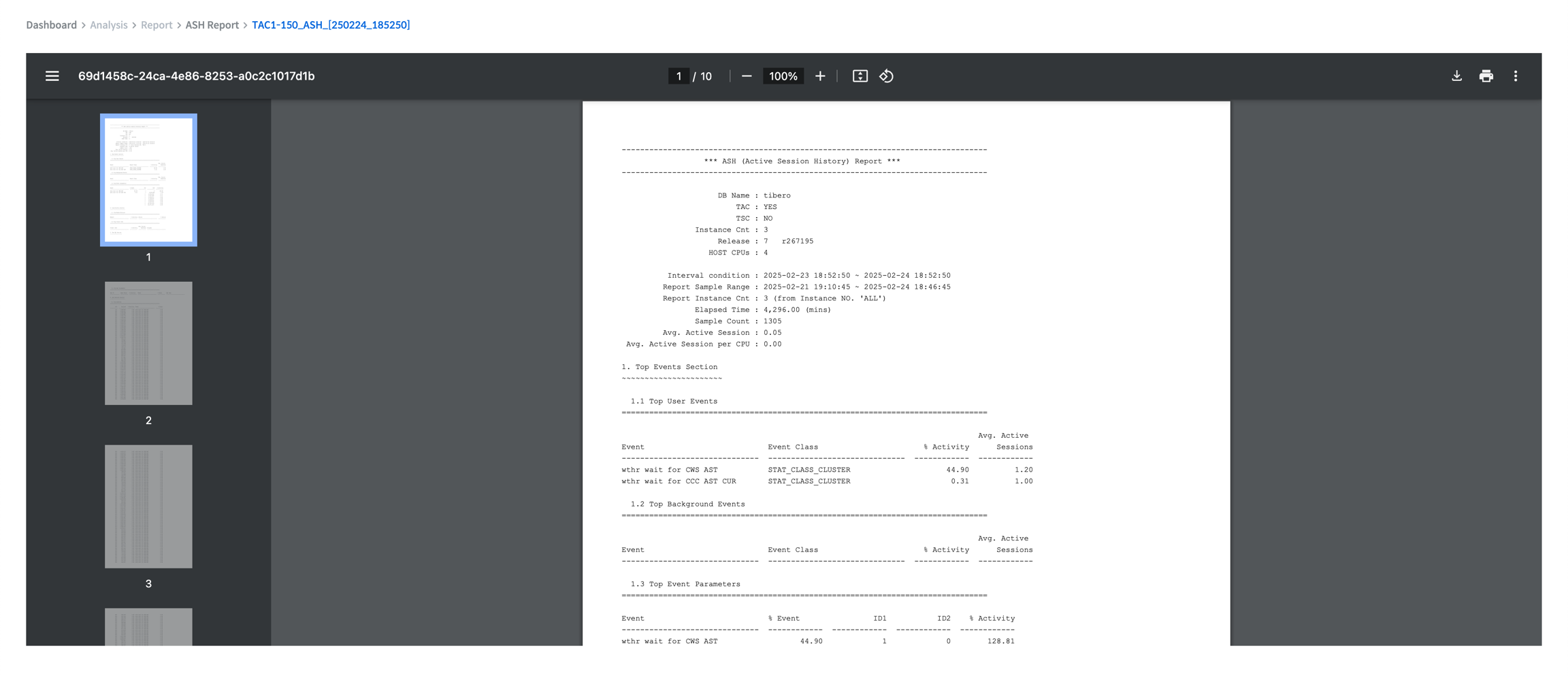 ASH Report는 사용자의 권한에 따라 특정 인스턴스 또는 클러스터 단위로 데이터베이스의 활성 세션(Active Session) 정보 분석 리포트를 생성 및 조회할 수 있는 기능이다.