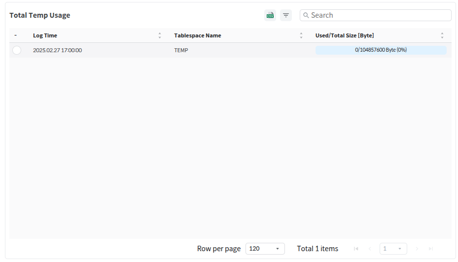Temp Usage 에서 선택한 항목의 전체 Temp 사용량 정보를 상세하게 확인할 수 있다.