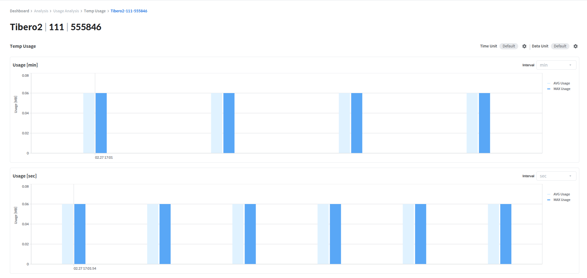 해당 페이지에서는 Temp usage의 분단위, 초단위 사용량과 변화량을 확인할 수 있다.