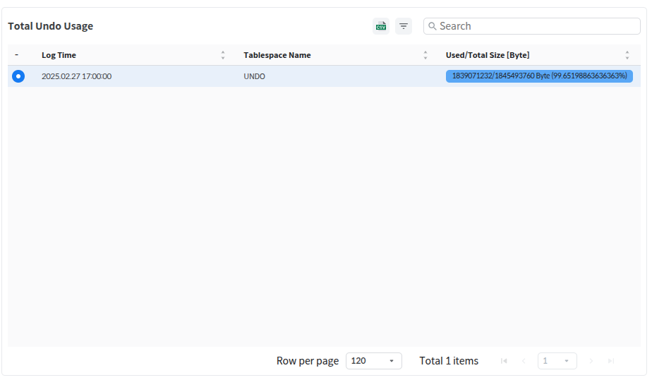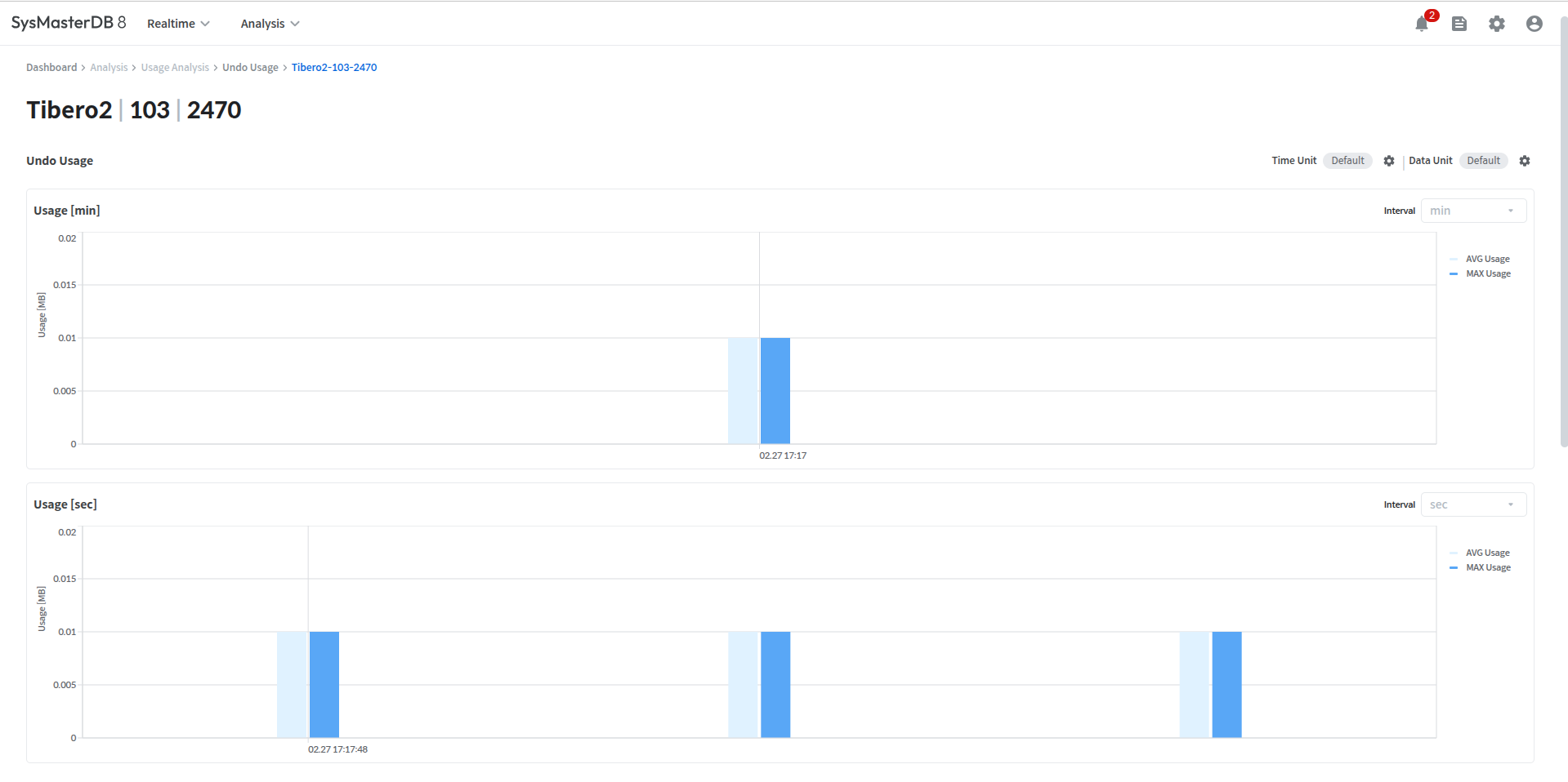 해당 페이지에서는 Undo usage의 분단위, 초단위 사용량과 변화량을 확인할 수 있다.