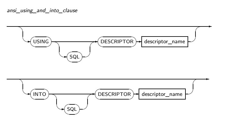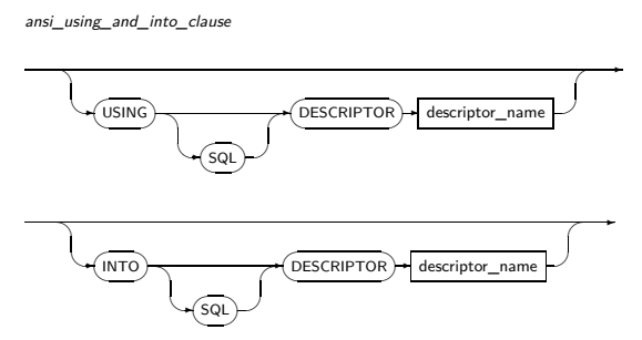 호스트 변수의 값이 아닌 호스트 변수 자체를 지정하며, GET DESCRIPTOR 문장을 따로 실행하지 않아도 FETCH한 후 지정된 항목의 값이 지정된 호스트 변수에 들어감