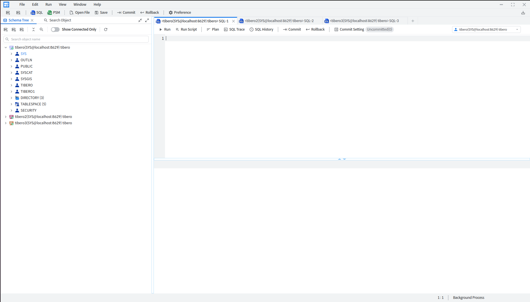 The list of connected connections is displayed in the Schema Object Tree Browser on the left.