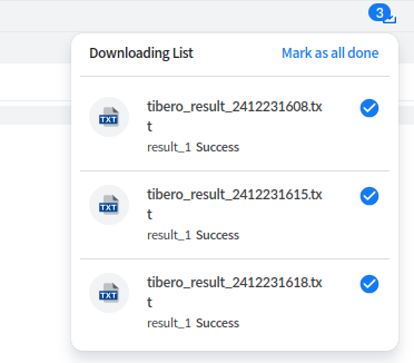 icon at the bottom of the result to display a modal window where the users can set the export options. In the Export Modal window, proceed with the export operation by setting the information in two steps.
