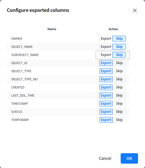 It shows the information of the editor session that ran SQL. Note that when the actual export operation is performed, the SQL is executed again and the information is the same as the editor session, but the export is performed in a different session.