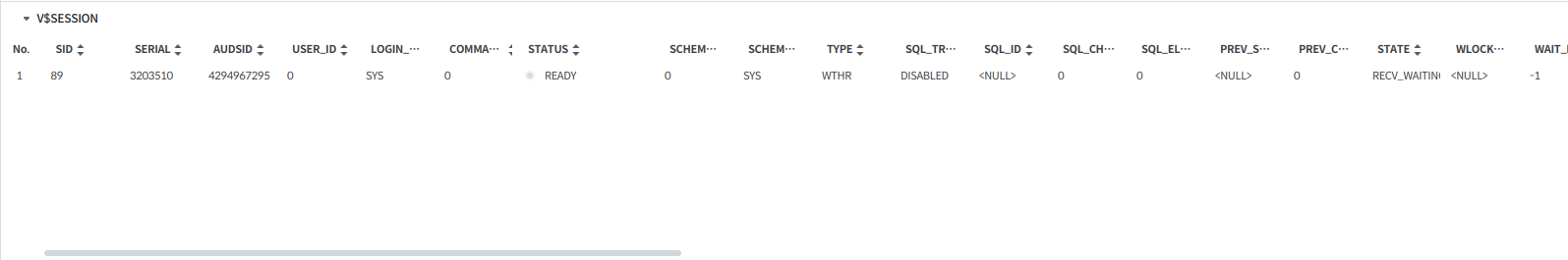 데이터는 V$SESSION 뷰를 기반으로 SID를 조건으로 조회된다.