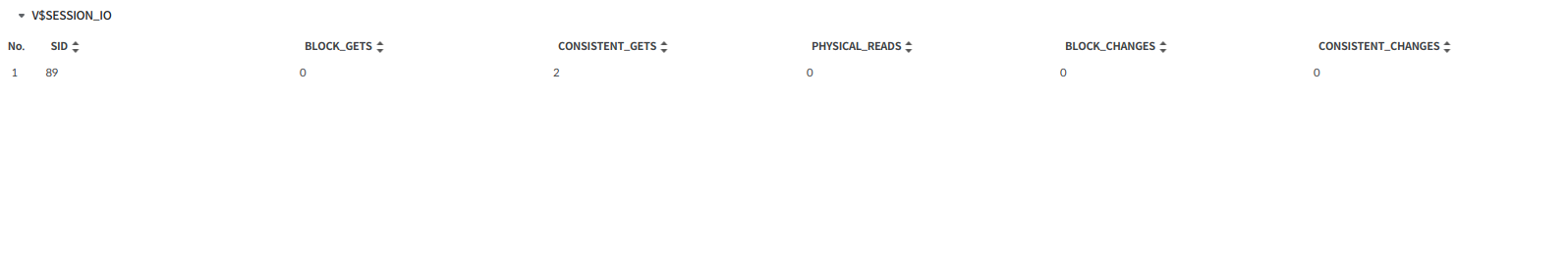 데이터는 V$SESSION_IO 뷰를 기준으로 조회된다.