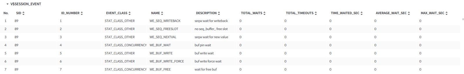 데이터는 V$SESSION_EVENT 뷰를 기준으로 조회된다.