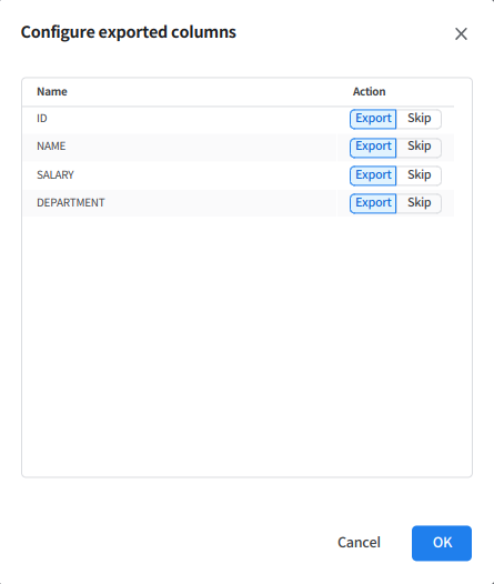 Configure exported columns 창