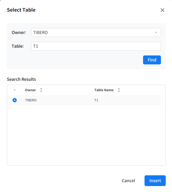 [Insert 버튼]을 클릭하여 테이블을 검색할 수 있다.