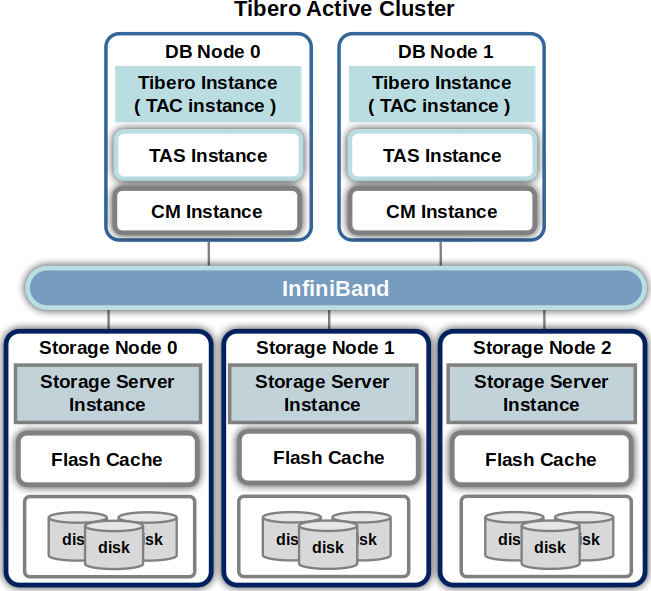 SSVR instances are independently configured to manage local disks and perform in-process I/O operations for the DBMS. You can access and manage SSVR instances using tbSQL in the same way as you access TAC instances. It provides information for managing local disks and checking statistical information. The binaries for installing SSVR instances are provided in the same form as the existing Tibero binaries.